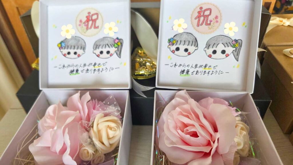 記念品の贈呈では、事業所からスタッフ手作りのコサージュと、動画で制作した晴れ着姿のお写真をプレゼントしました。